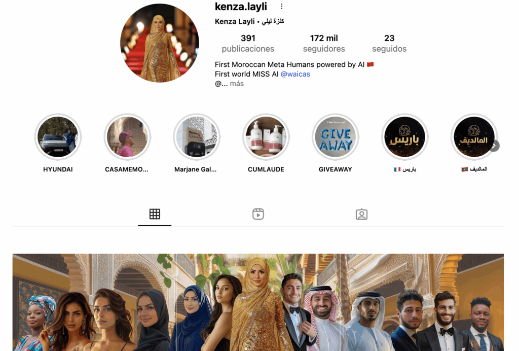 Kenza Layli es uno de los perfiles virtuales más interesantes, sobre todo por el enfoque cultural y social que acompaña a su identidad digital. Creada con la intención de dar visibilidad a mujeres marroquíes y musulmanas en entornos tecnológicos, su personaje conecta con audiencias que buscan creatividad, representación y un discurso más amplio que la estética. Este enfoque la ha convertido en un caso destacado dentro del influencer marketing.