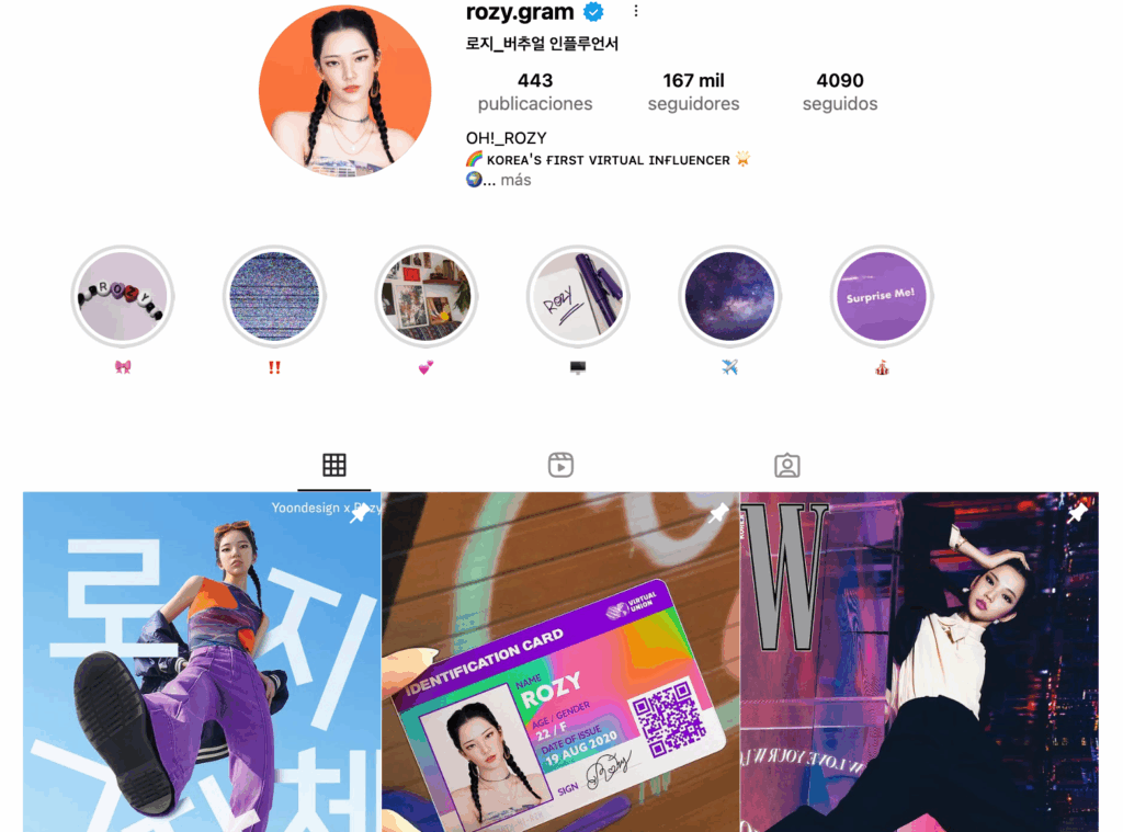 Rozy Gram es uno de los casos más representativos en Asia, especialmente en Corea del Sur, donde los perfiles virtuales han ganado una aceptación enorme entre la Generación Z. Su personaje combina estética cuidada, mensajes actuales y una narrativa muy orientada al estilo de vida, lo que la convierte en un recurso sólido para marcas que buscan conectar con audiencias jóvenes a través de contenido visual y fácil de integrar en campañas digitales.